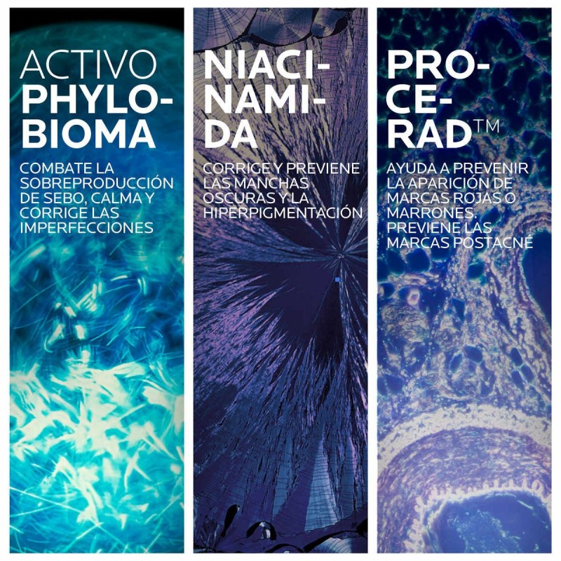 Gracias a su innovadora fórmula con phylobioma y activos dermatológicos, actúa en profundidad sobre el exceso de sebo y la obstrucción de poros, ayudando a prevenir la reaparición de granos y marcas post-acné.