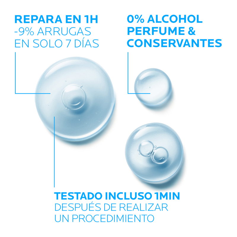 En su fórmula contiene ácido hialurónico, vitamina B5, cobre azul natural y agua termal de La Roche Posay.