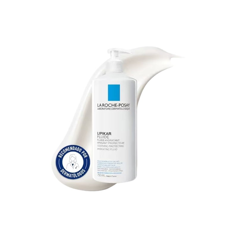 Lipikar Fluido 750 ml de La Roche-Posay es una emulsión hidratante ligera especialmente formulada para pieles sensibles, secas y con tendencia a irritaciones. Gracias a su combinación de niacinamida calmante y agua termal de La Roche-Posay, ayuda a restaurar la barrera cutánea, reducir la tirantez y proporcionar un confort inmediato.