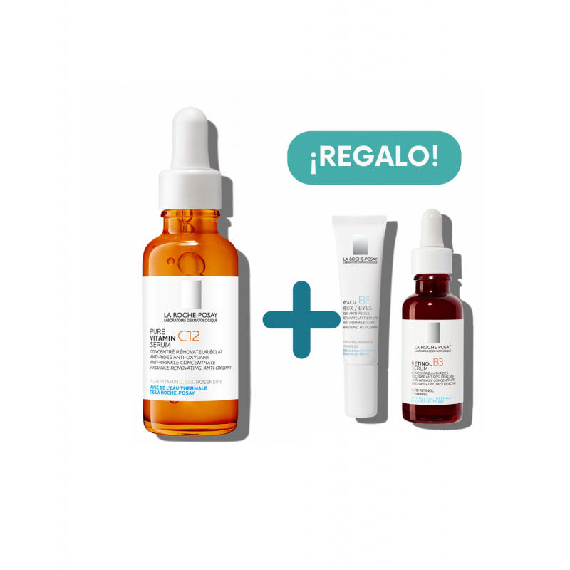 LA ROCHE POSAY PACK ILUMINADOR: PURE VITAMIN C12 SERUM + HYALU B5 CONTORNO + RETINOLB3 MINI SERUM
