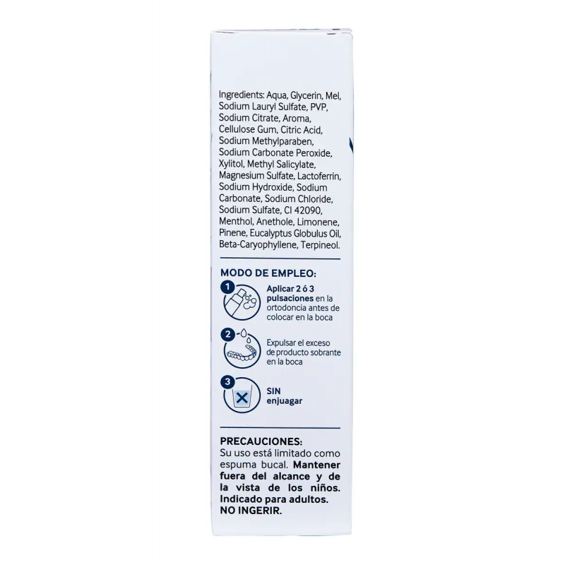 Espuma bucal para ortodoncia y alineadores dentales que proporciona limpieza profunda, frescor inmediato y ayuda a prevenir manchas. Aplicar y listo, sin necesidad de enjuague.