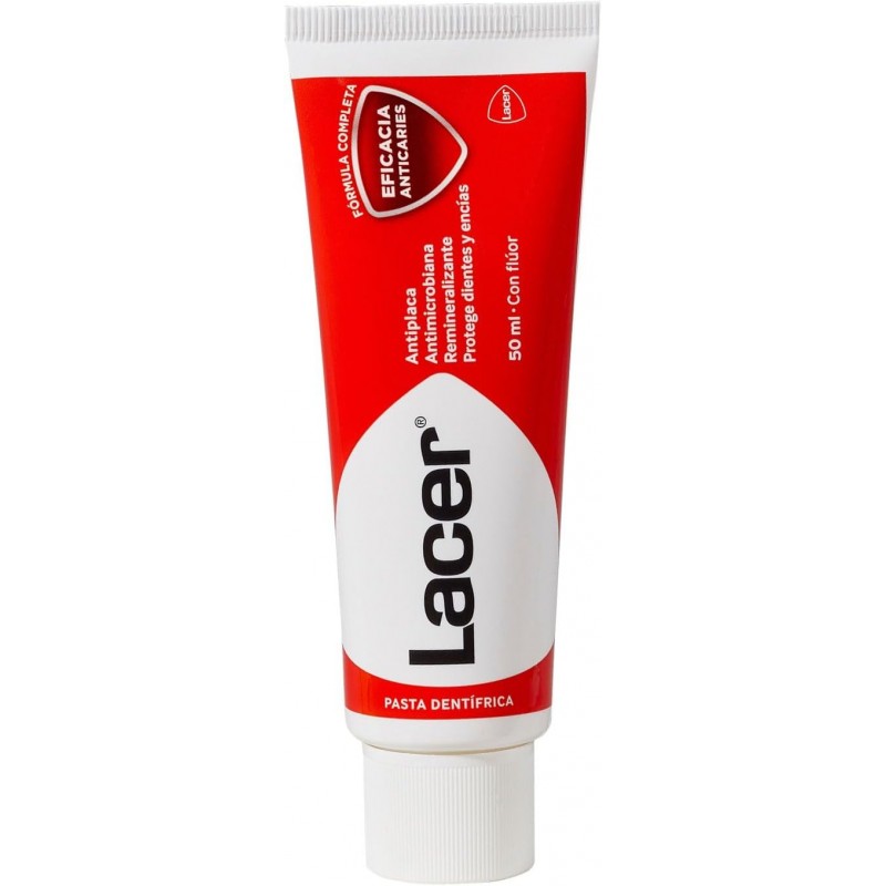 Lacer Pasta con Flúor de 50 ml es una pasta dentífrica que proporciona una limpieza eficaz y refuerza el esmalte dental, ayudando a prevenir la caries. Su fórmula con flúor mantiene un aliento fresco y asegura una protección duradera para los dientes.