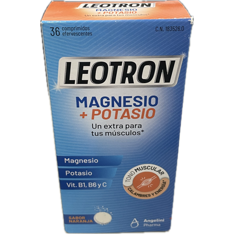 Leotron Magnesio + Potasio Angelini Comp Efferv 30 Comp está formulado para aportar magnesio y potasio, minerales esenciales que contribuyen al funcionamiento normal de los músculos y al mantenimiento del equilibrio electrolítico del organismo. Su formato efervescente facilita la absorción y permite una ingesta agradable y rápida, convirtiéndose en un aliado ideal durante períodos de esfuerzo físico, estrés, cambios de estación o situaciones que puedan favorecer la pérdida de minerales. Con su consumo regular, ayuda a reducir la sensación de fatiga y a mantener la actividad física y mental diaria.
