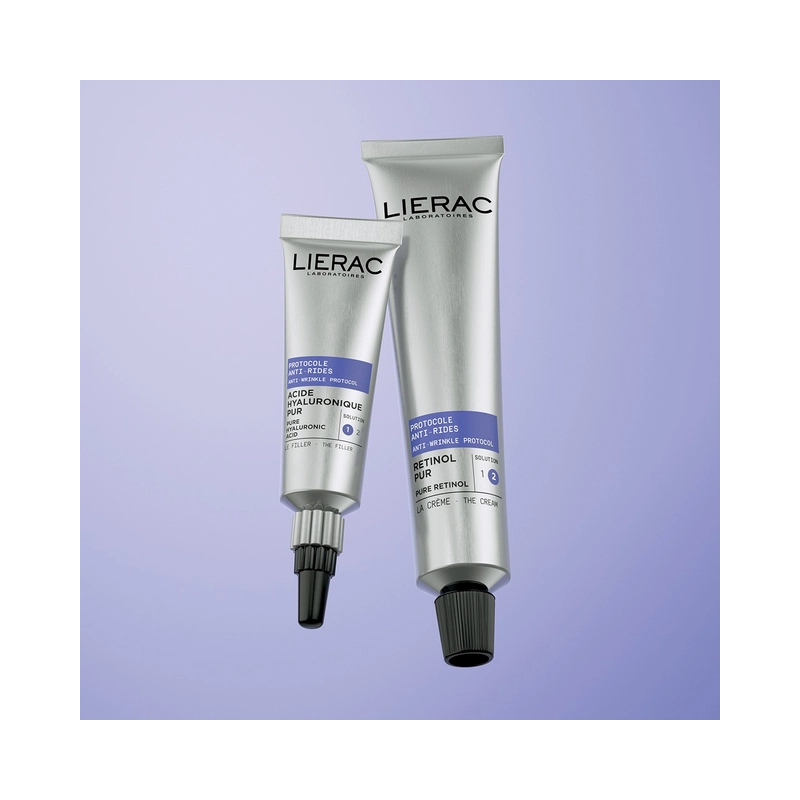 Para completar el Protocolo Antiarrugas Lierac combinar la crema con el Ácido Hialurónico Puro Lierac como paso 1 de la rutina.