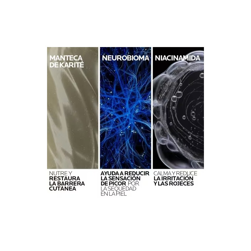 Gracias a la combinación de niacinamida, manteca de karité, Neurobioma y el Aqua Posae Filiformis, este bálsamo hidrata, repara y protege la piel, reduciendo la inflamación y fortaleciendo su barrera natural. Su textura no grasa ni pegajosa permite una aplicación rápida y cómoda, proporcionando comodidad inmediata tras cada uso.