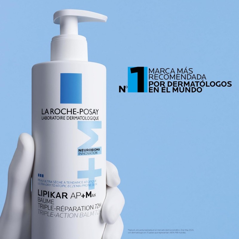 Más informaciónLipikar AP+Max Bálsamo Corporal Triple acción 72h de La Roche-Posay es un tratamiento relipidizante y calmante, ideal para pieles muy secas, irritadas y propensas a la dermatitis atópica. Su nueva fórmula con tecnología AP+Max (Aqua Posae + Microresyl) no solo alivia la sensación de picor de forma inmediata y sequía extrema, sino que también equilibra el microbioma de la piel, previniendo futuros brotes de irritación.