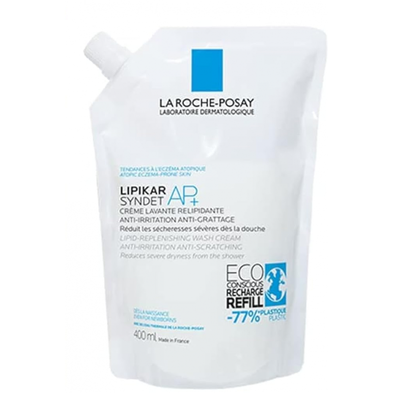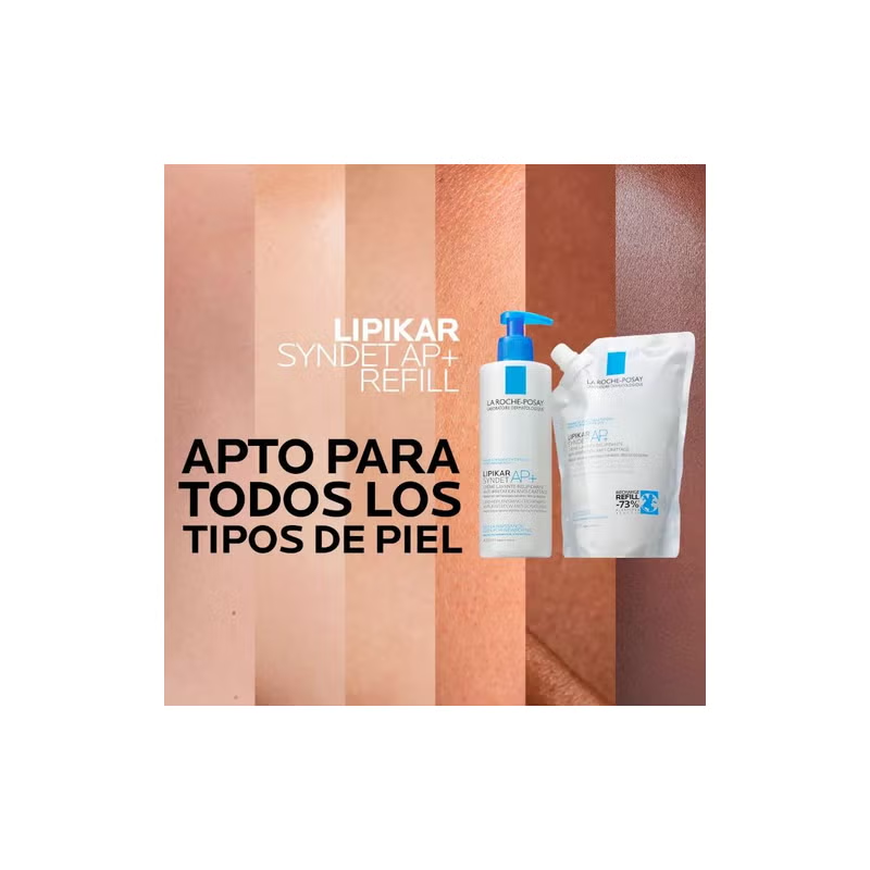 La Roche-Posay Lipikar Syndet AP+ Crema Lavante en formato eco recarga 400 ml es un limpiador suave tipo syndet (sin jabón), especialmente formulado para la higiene diaria de pieles secas, muy secas y con tendencia atópica.