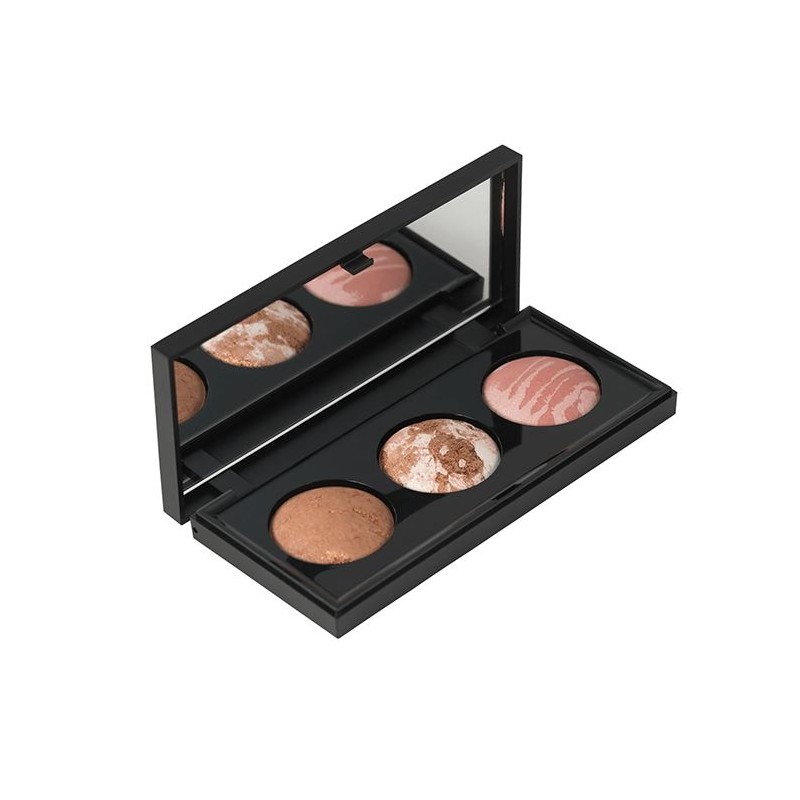 Incluye tres tonos perfectamente combinados: un bronceador que aporta calidez y define los rasgos, un iluminador que realza los puntos de luz del rostro con un acabado luminoso, y un colorete que proporciona un toque fresco y natural a las mejillas.