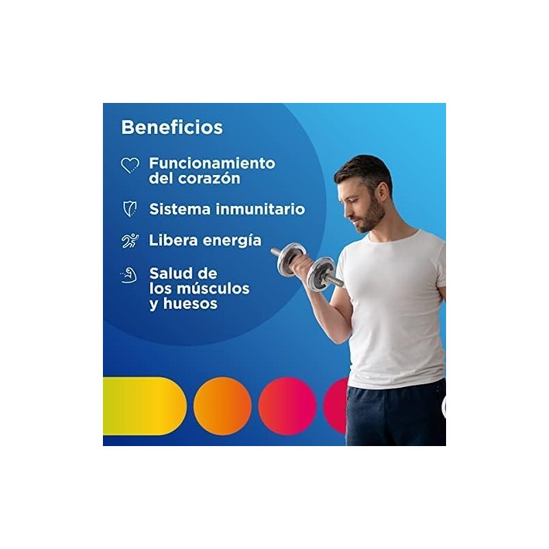 - Vitamina D: Contribuye al mantenimiento de los huesos en condiciones normales y para el funcionamiento normal de los músculos.