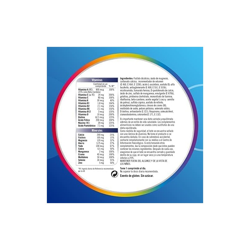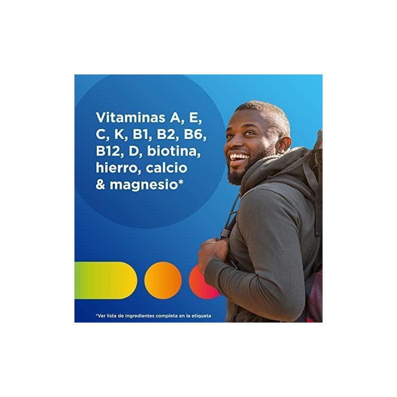 Complemento alimenticio con 13 vitaminas y 11 minerales para hombres a partir de 18 años.