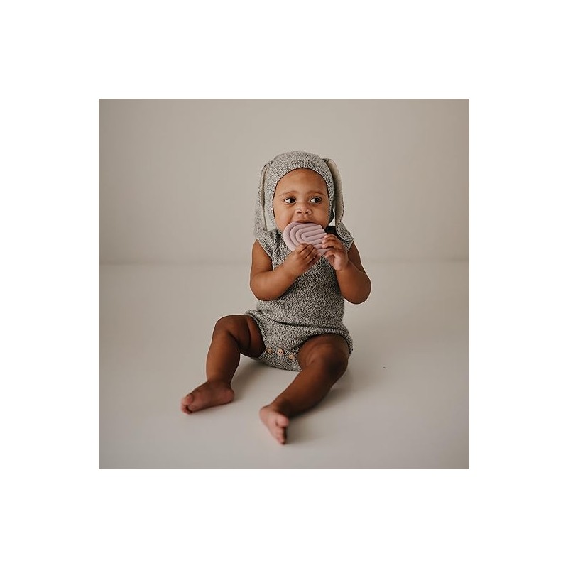 Mordedor de silicona seguro y suave que ayuda a aliviar las molestias de la dentición del bebé.