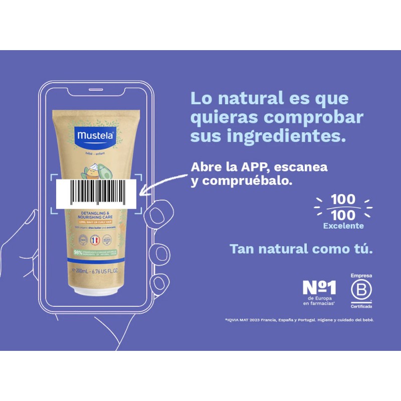 Mustela Acondicionador 2 en 1 Desenredante y Nutritivo es un tratamiento suave que hidrata, nutre y desenreda el cabello desde la primera aplicación. Su fórmula con 98% de ingredientes de origen natural, enriquecida con aguacate y manteca de karité, protege la fibra capilar y facilita el peinado, dejando el cabello suave, brillante y manejable. Perfecto para cabellos largos, ondulados o rizados, y apto para bebés, niños y adultos, combina nutrición y desenredado en un solo paso, haciendo que el cuidado del cabello sea rápido y efectivo.
