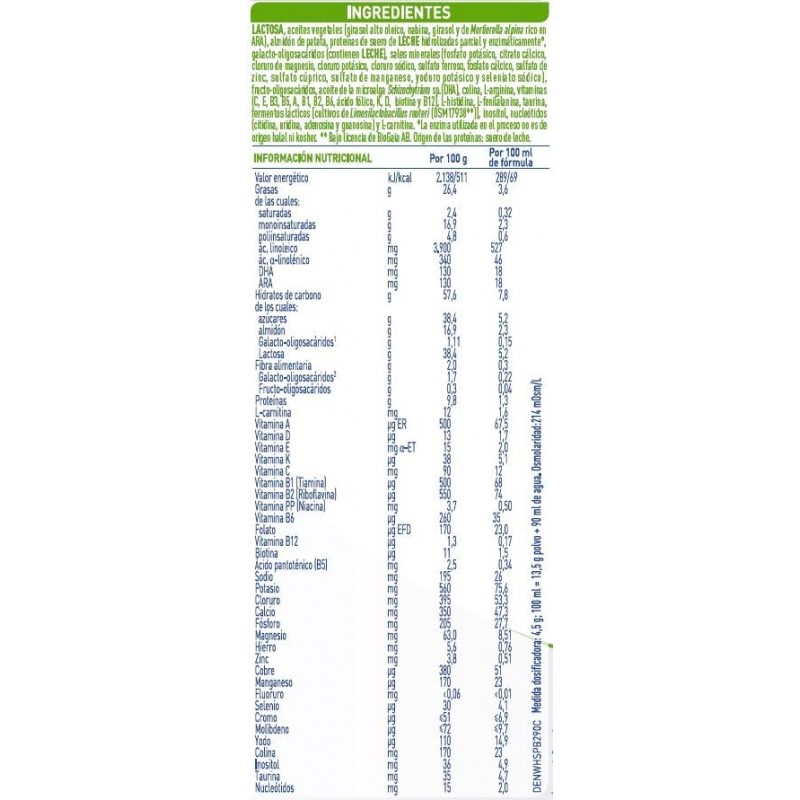 NAN Confort Total 2 también aporta DHA, conforme a la normativa vigente, que contribuye al desarrollo normal del cerebro y la visión, así como un equilibrio adecuado de vitaminas y minerales esenciales como hierro, calcio y vitamina D, necesarios para el crecimiento, el desarrollo cognitivo y la formación ósea durante esta etapa.