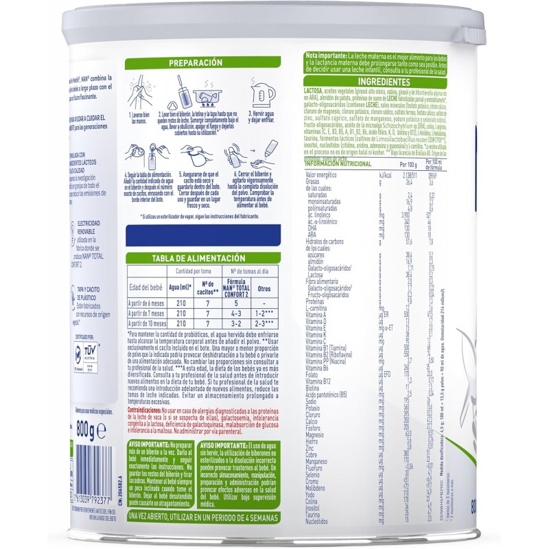 Más informaciónNAN CONFORT TOTAL 2 LECHE EN POLVO 800 GRAMOS