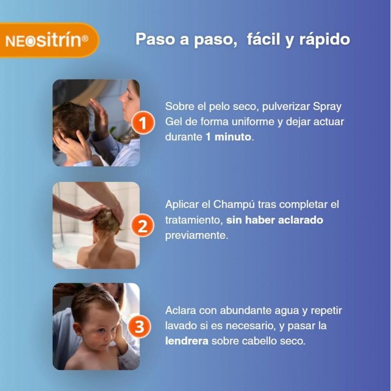 ¿CÓMO USAR NEOSITRIN PACK ELIMINA SPRAY-GEL 60ML + PROTECT ACONDICIONADOR 100ML + REGALO CHAMPÚ Y LEBDRERA?