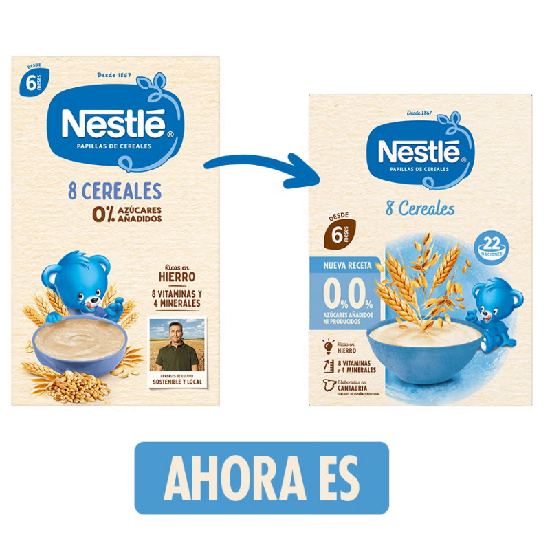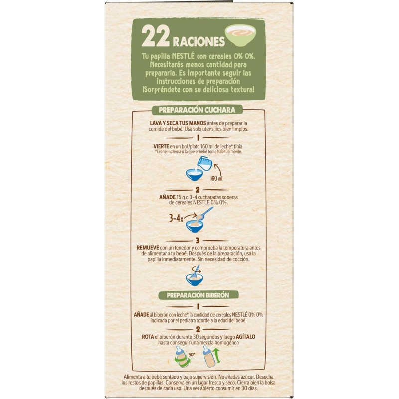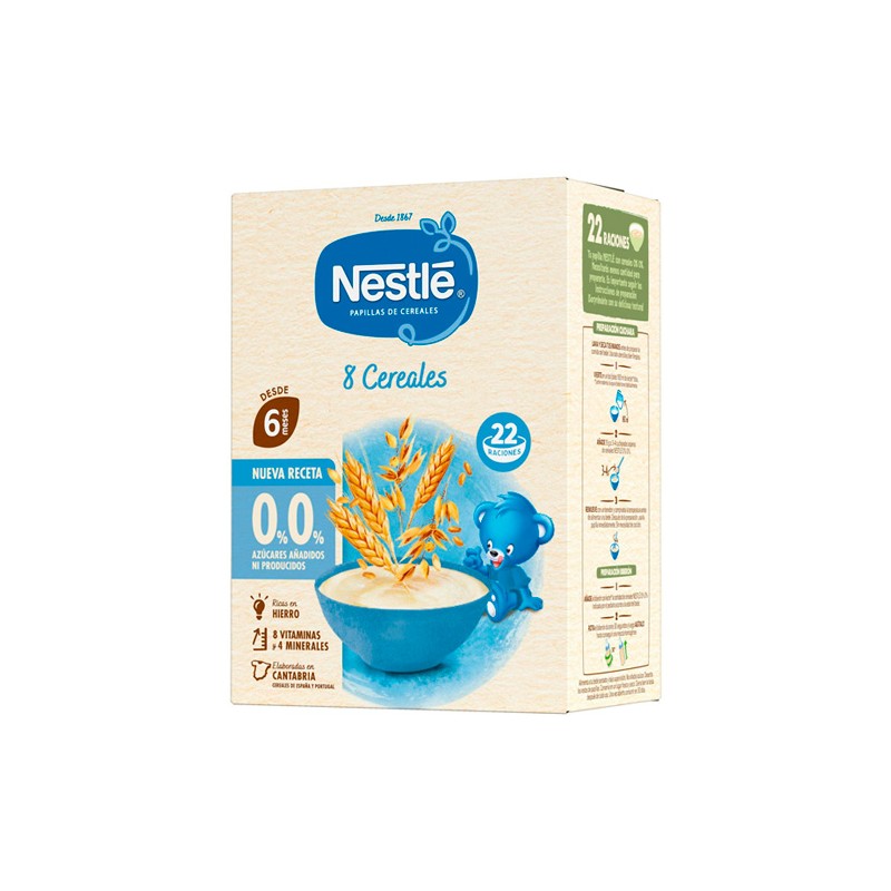 Más informaciónLa Nestlé Papilla 8 Cereales 0% Azúcares Añadidos está especialmente formulada para acompañar la alimentación complementaria del bebé desde los 6 meses. Elaborada con una cuidada selección de cereales, ofrece una nutrición completa y adaptada a sus necesidades en esta etapa clave de crecimiento.