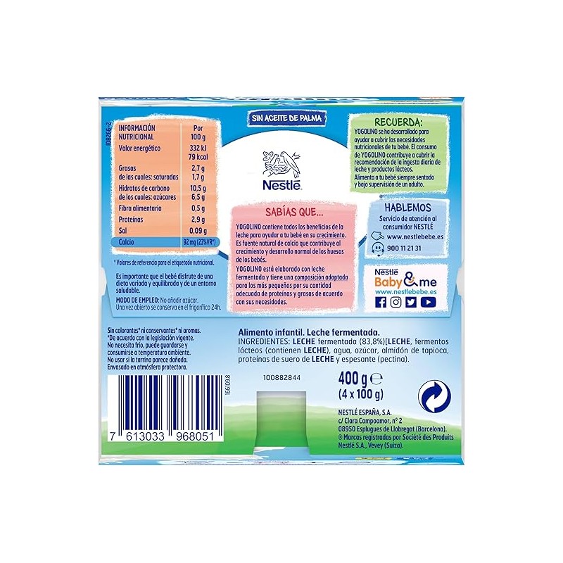 Nestlé Yogolino Sabor Natural viene en un práctico pack de 4 tarrinas de 100 g cada una. Es un producto lácteo pensado especialmente para bebés y niños pequeños, elaborado con leche de alta calidad y sin necesidad de refrigeración antes de abrir. Su textura cremosa y su sabor suave lo convierten en una opción ideal para introducir a los más pequeños en el mundo de los lácteos de forma segura y nutritiva.