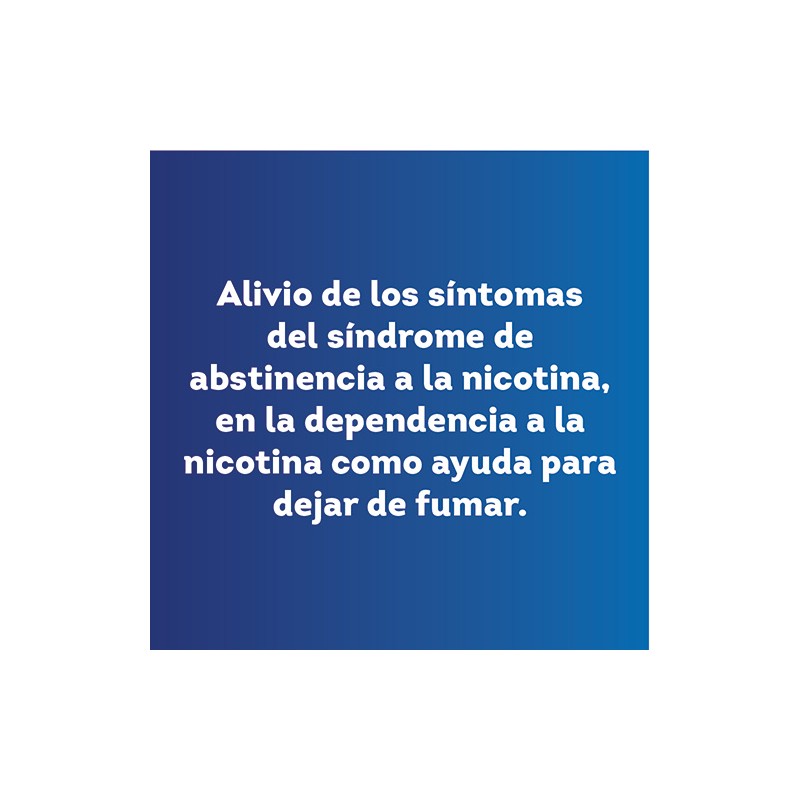 Este medicamento puede causar reacciones adversas que están relacionados con los efectos farmacológicos de la nicotina o con los efectos de abstinencia relacionados con el abandono del hábito de fumar. Ciertos síntomas notificados como depresión, irritabilidad, nerviosismo, inquietud, mal humor, ansiedad, somnolencia, pérdida de concentración, insomnio y alteraciones del sueño pueden estar relacionadas con el síndrome de abstinencia asociado con el abandono del hábito de fumar.