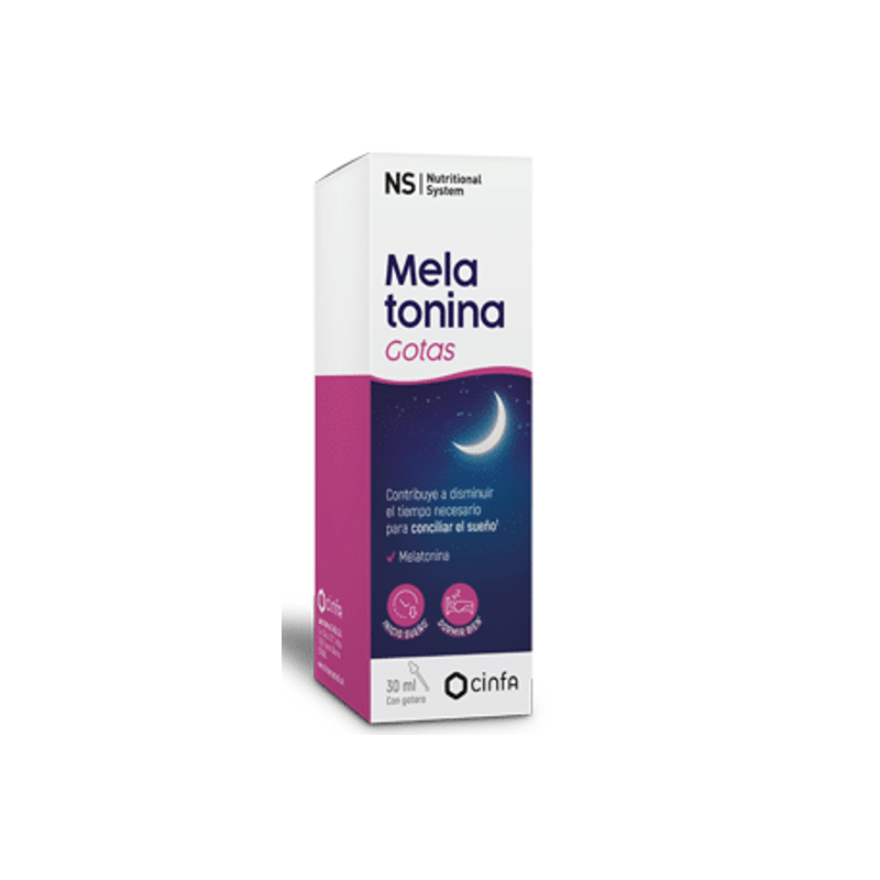 NS Melatonina Gotas 1 mg 30 ml es un complemento alimenticio que contribuye a reducir el tiempo necesario para conciliar el sueño. Su formato en gotas permite una dosificación precisa y cómoda, ideal para adultos y niños a partir de 3 años.