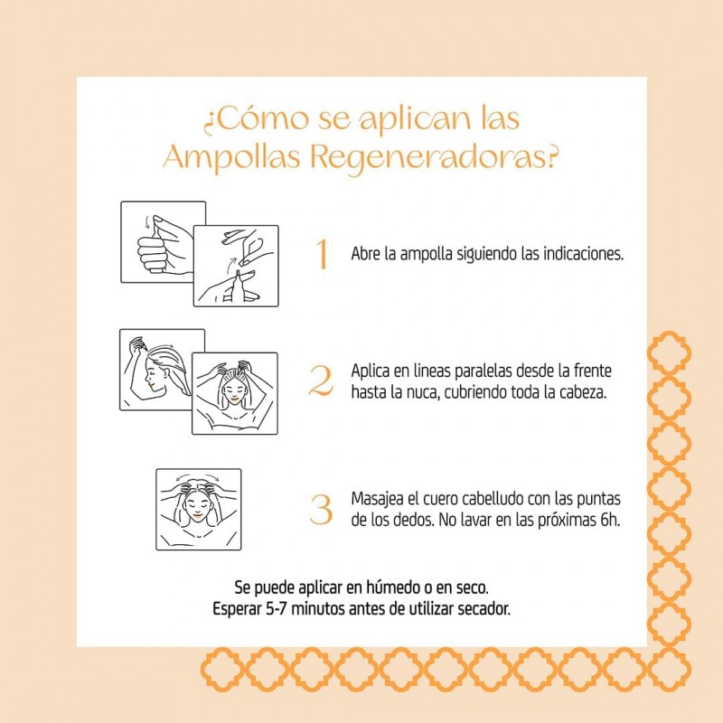 Desde Sanafarmacia te recomendamos aplicar el contenido de un vial (10 ml) directamente sobre el cuero cabelludo limpio y seco o ligeramente húmedo. Posteriormente masajear suavemente con las yemas de los dedos para facilitar la absorción. No aclarar. Usar 2 a 3 veces por semana durante al menos 6 semanas consecutivas para resultados óptimos.
