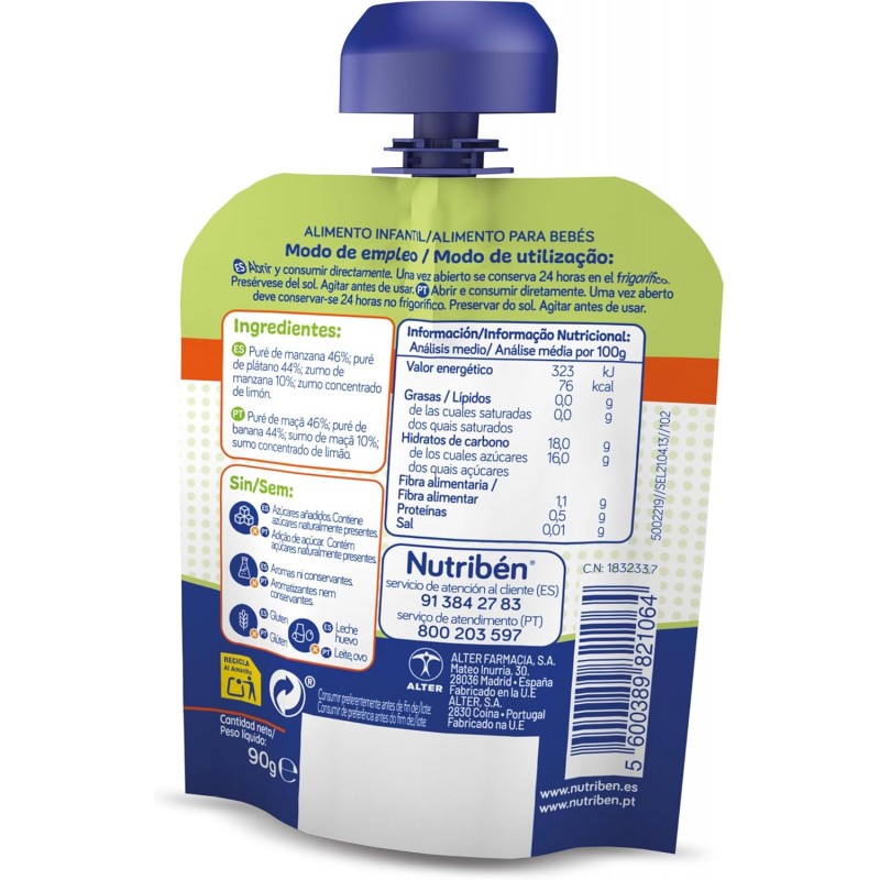 Más informaciónNUTRIBEN FRUTA & GO MANZANA PLATANO 90 G
