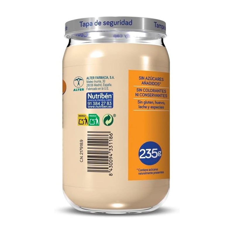 Este potito está diseñado para facilitar la introducción de nuevos sabores y combinaciones durante la etapa de alimentación complementaria, con una textura suave y homogénea que facilita la ingesta y digestión. Además, está elaborado sin conservantes ni colorantes añadidos, garantizando una alimentación segura y adaptada a las necesidades del bebé.