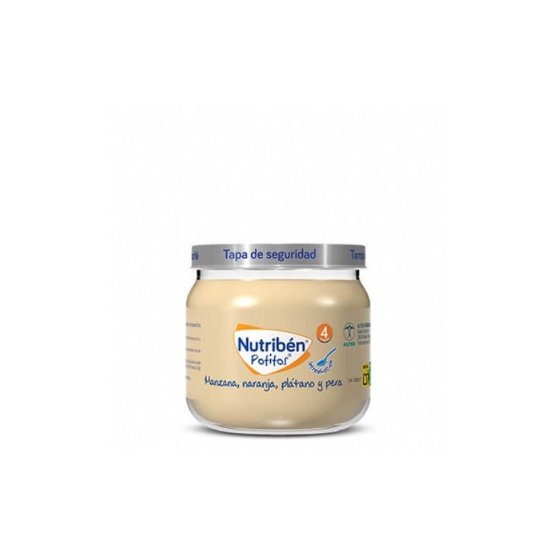 Potito nutriben de introducción para bebés a partir de 4 meses de frutas: manzana, naranja, plátano y pera.