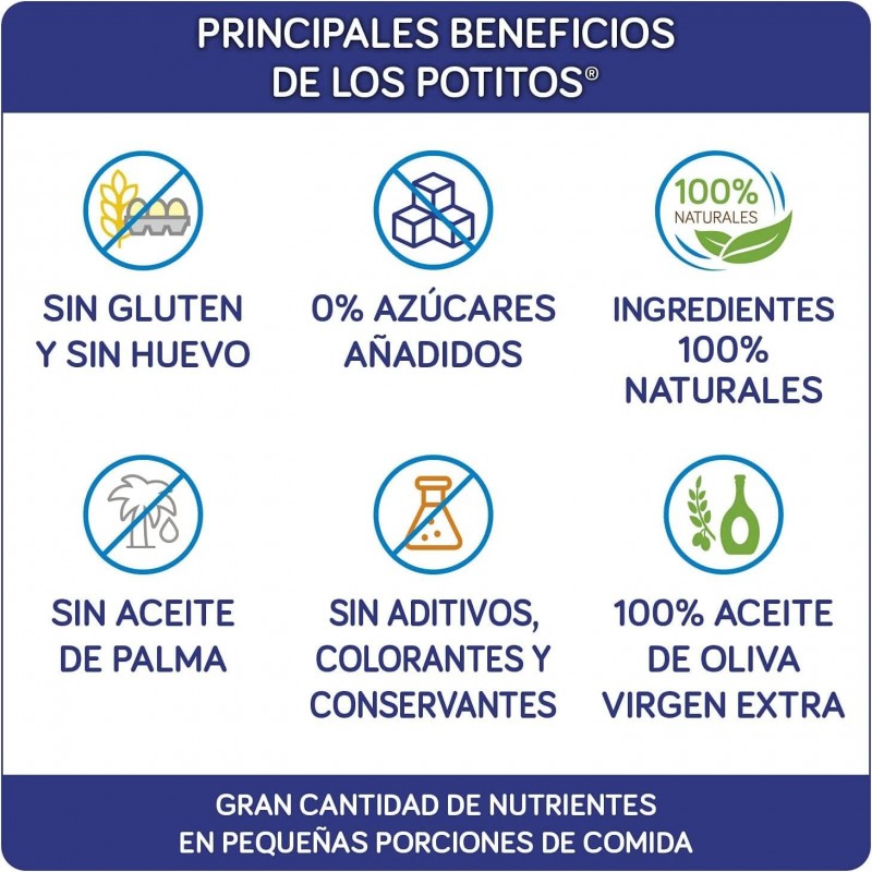 Indicado a partir de los 6 meses, a la hora de la comida. List para servir, sin gluten, sin almidones, sin huevo y sin lactosa.