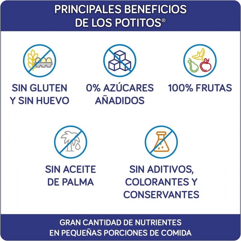 Potito de frutas para bebés a partir de 6 meses. Ideal para llevar a cualquier parte.