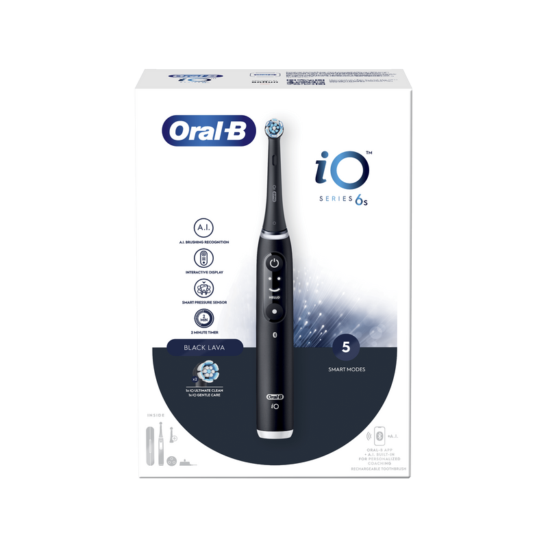 El cepillo dental eléctrico Oral-B iO6 ofrece una experiencia de cepillado avanzada gracias a su tecnología innovadora y su diseño premium. Proporciona una limpieza eficaz y suave que ayuda a eliminar la placa, cuidando dientes y encías en cada uso.