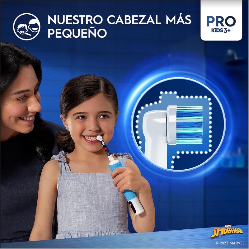 Haz que la rutina dental sea tan divertida como una aventura en Spiderman con el Oral-B Kids cepillo. Este cepillo eléctrico infantil, con diseños de tu superhéroe favorito, Spiderman, convierte el cepillado en un momento divertido y lleno de ilusión.