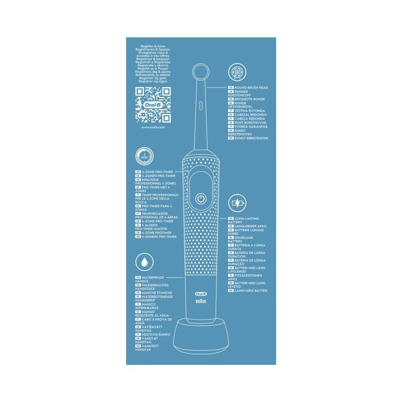 Además, su temporizador profesional de 2 minutos te ayuda a cumplir con el tiempo recomendado por odontólogos, dividiendo el cepillado en 4 cuadrantes para asegurar una higiene equilibrada. Su batería recargable ofrece hasta 8 días de autonomía con una sola carga.