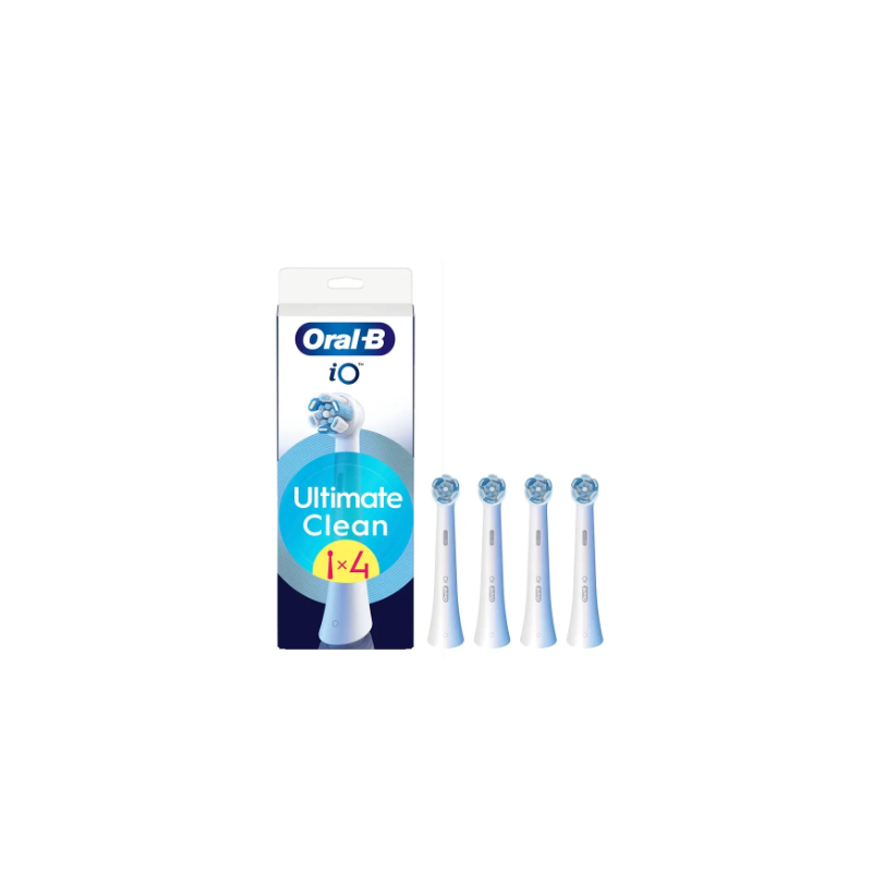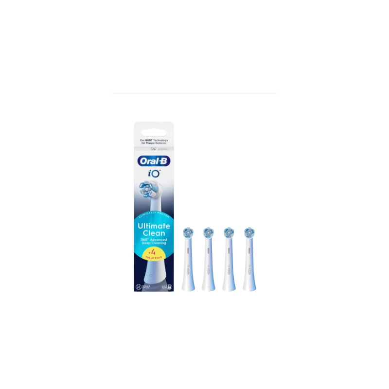 Pack que incluye 4 cabezales Gentle Care de recambios para cabezales de cepillos Oralb de los modelo IO, en color blanco.