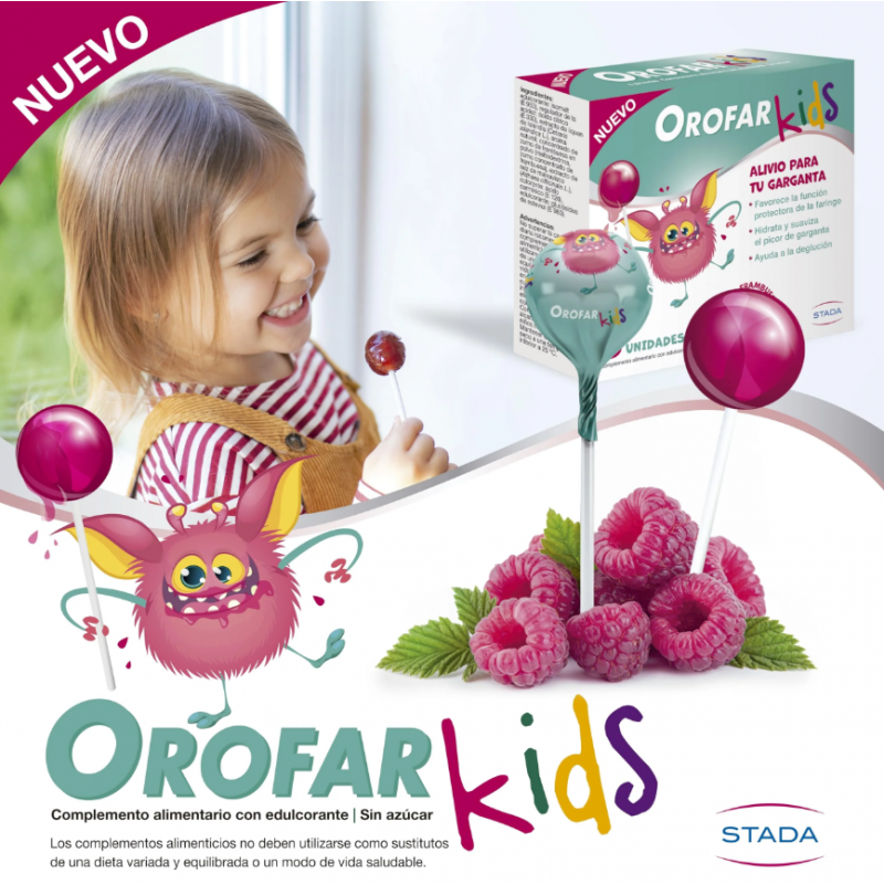 Orofar Kids son piruletas dulces formuladas para aliviar el dolor de gargante y picor de los más pequeños. Formulada con extractos naturales de liquen de Islandia, Malva e Isomalt.
