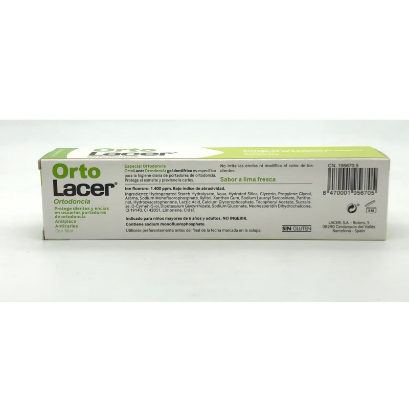 Más informaciónOrto Lacer Gel Dentífrico en su presentación de 75 ml está diseñado para ofrecer un cuidado dental especializado para quienes usan aparatos ortodónticos. Este gel dentífrico contiene flúor, que ayuda a fortalecer el esmalte dental y proteger contra la caries, y está formulado con ingredientes suaves que no dañan los aparatos ni las encías.