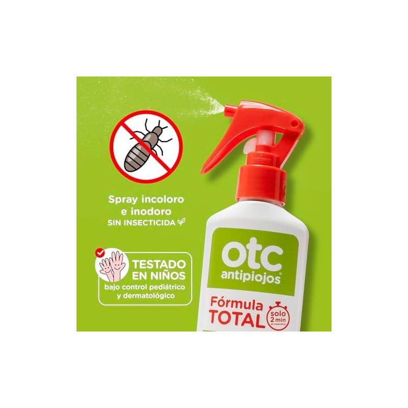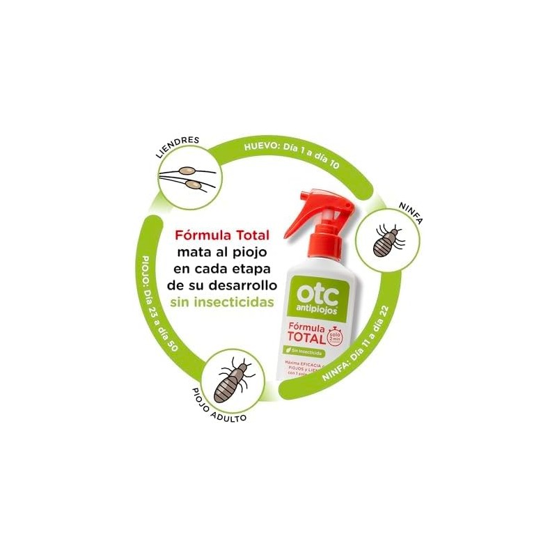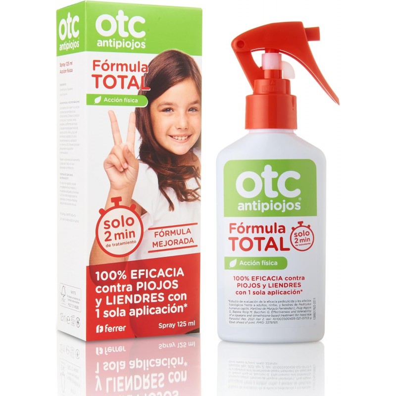 OTC Antipiojos Fórmula Total 125 ml es un tratamiento eficaz y seguro diseñado para combatir infestaciones de piojos y liendres desde la primera aplicación. Su fórmula sin insecticidas actúa de manera física, asfixiando y deshidratando los parásitos, lo que garantiza una alta eficacia sin riesgo de resistencias.