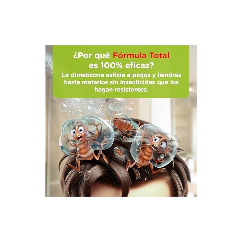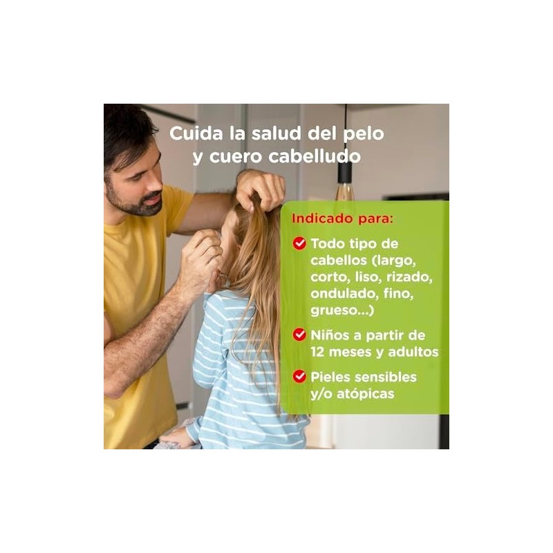 Gracias a su textura fácil de aplicar, se distribuye uniformemente sobre el cabello y cuero cabelludo, ofreciendo una acción integral que elimina piojos, desprende liendres y deja el cabello limpio y manejable. Ideal para niños y adultos, incluso con cuero cabelludo sensible.