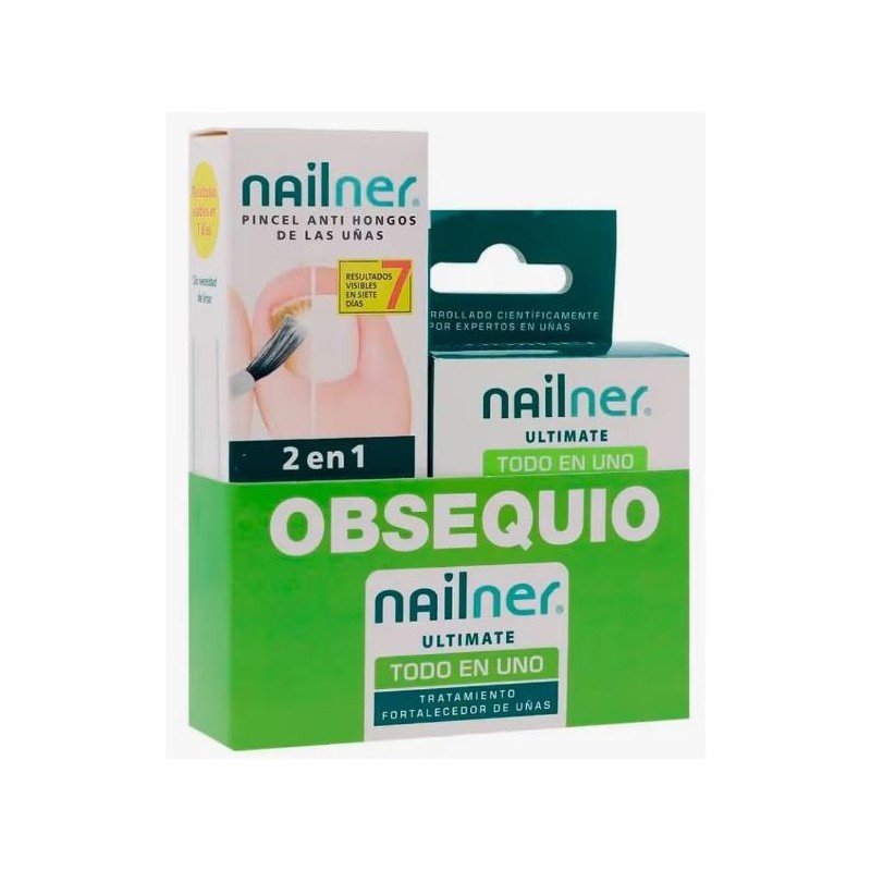 El Pack Nailner Pincel Antihongos de Uñas 2 en 1 5 ml + Nailner Ultimate Fortalecedor 10 ml de regalo ofrece una solución completa para el cuidado y mantenimiento de las uñas que presentan signos de debilitamiento o alteraciones en su aspecto.