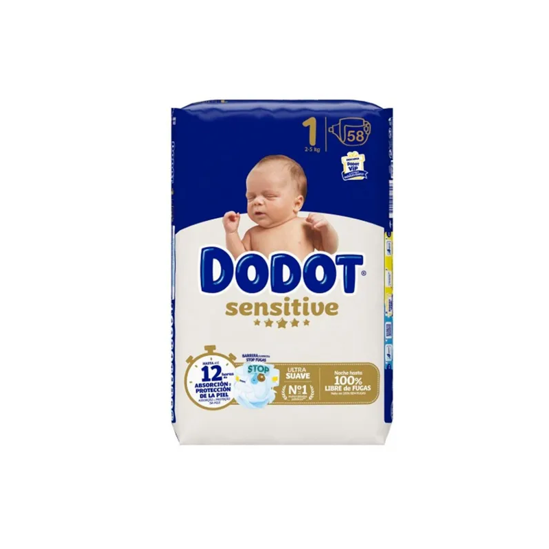 DODOT SENSITIVE PAÑAL INFANTIL TALLA 1 2-5 KG 58 UNIDADES