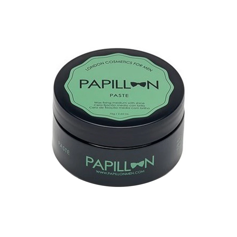 Papillon Paste es una cera de peinado diseñada para quienes buscan controlar y definir su estilo con un acabado brillante y natural. Su fijación media permite moldear el cabello con flexibilidad, facilitando retoques a lo largo del día sin dejar residuos visibles.