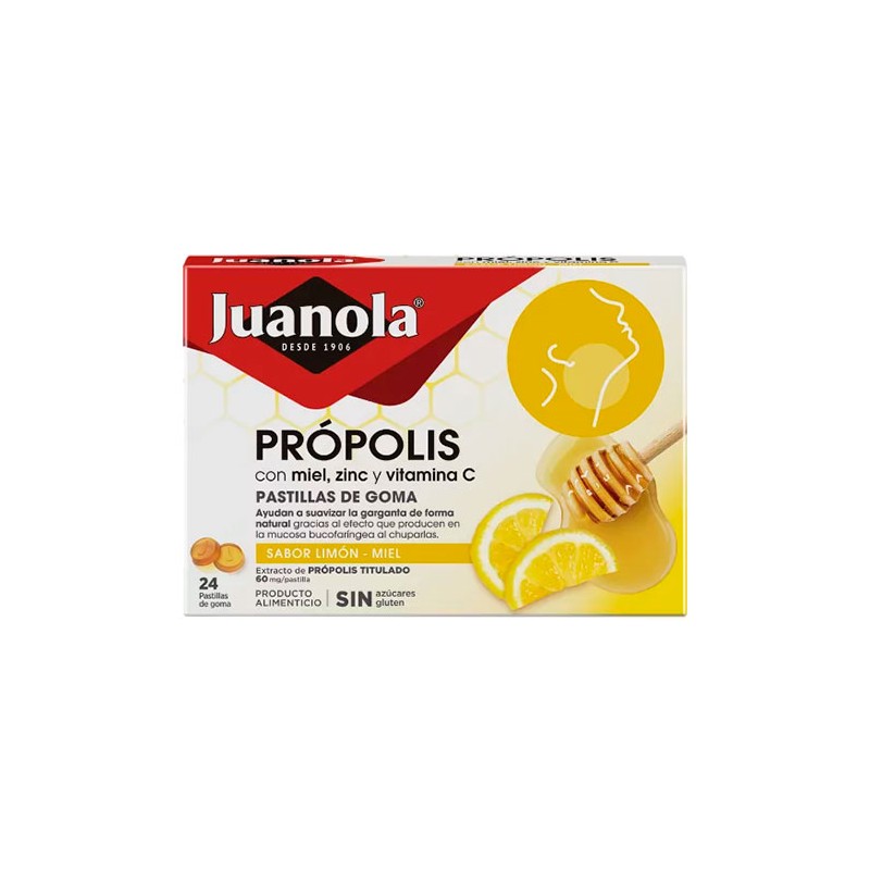 JUANOLA PROPOLIS VIT C ZINC SABOR LIMON Y MIEL 24 PASTILLAS DE GOMA