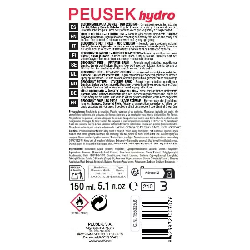 PEUSEK HYDRO DESODORANTE PARA PIES PULVERIZADOR SPRAY 150ML