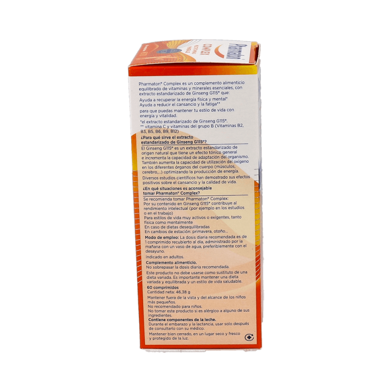 Cada comprimido de Pharmaton Complex contiene una selección de nutrientes esenciales que ayudan a combatir la fatiga y el cansancio, mejorando la energía y vitalidad diarias. Además, su contenido de ginseng G115 apoya la función cognitiva y el rendimiento físico, ayudando a mejorar la concentración, la memoria y la resistencia.