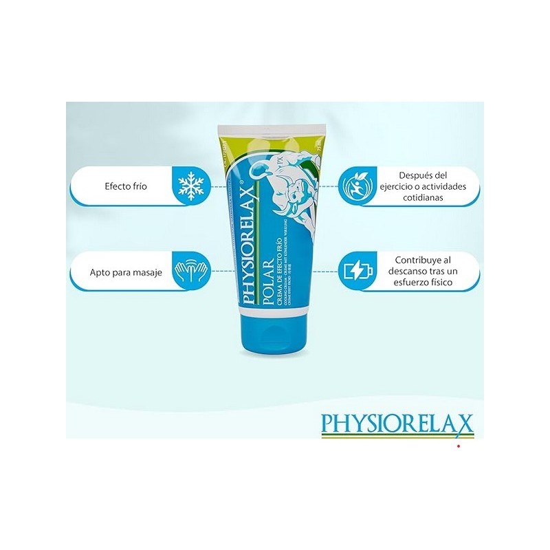 Más informaciónCon una fórmula basada en activos naturales como árnica, harpagofito, caléndula y menta, Physiorelax Polar actúa generando un efecto criogénico que favorece la desinflamación muscular, la recuperación post-esfuerzo y el bienestar general.