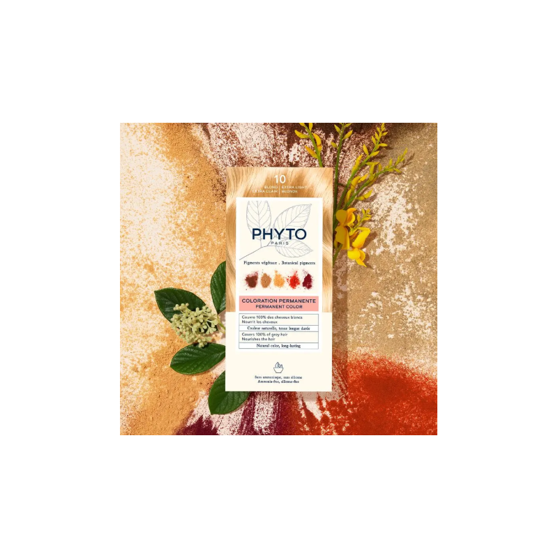 Phyto Color Tinte 10.0 Rubio Extra Claro proporciona un color radiante, luminoso y elegante con reflejos suaves que aportan luz y vitalidad al cabello. Su fórmula está elaborada con pigmentos vegetales de alta pureza y aceites nutritivos como jojoba, monoï y macadamia, que protegen la fibra capilar, aportando nutrición y suavidad durante la coloración.