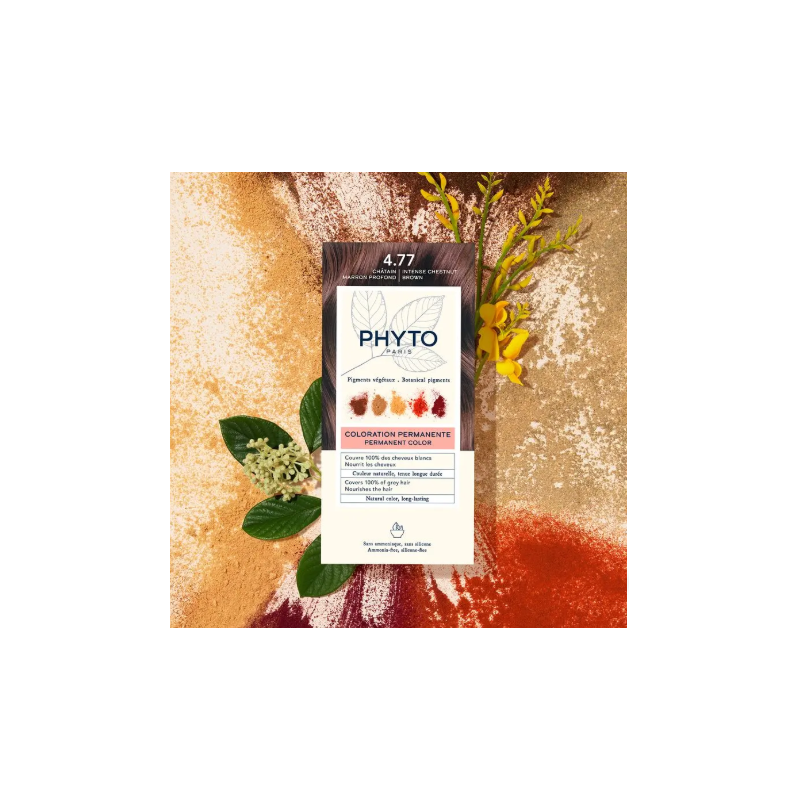 Phyto Color Tinte 4.77 Castaño Marrón Intenso proporciona un color rico, cálido y sofisticado gracias a su exclusiva fórmula con pigmentos vegetales naturales y aceites nutritivos que protegen y subliman el cabello durante la coloración.