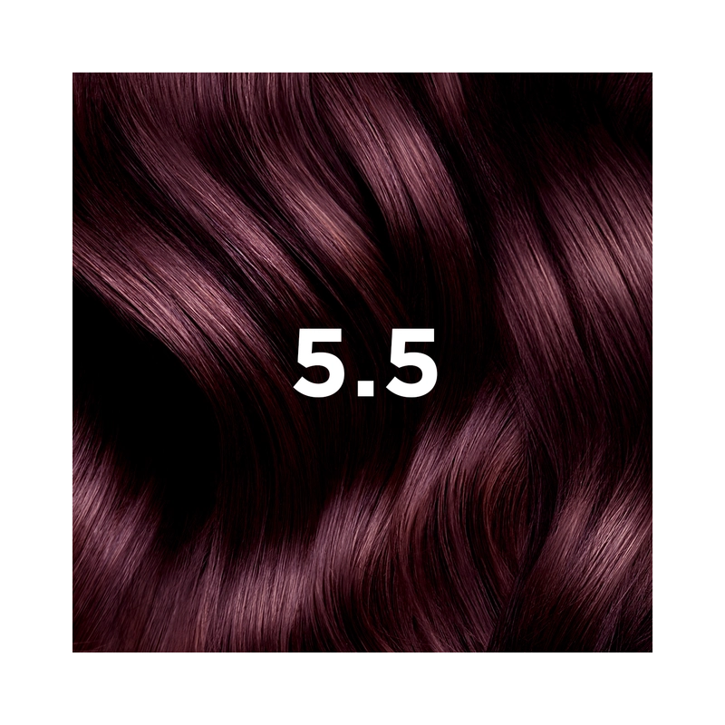 Coloración permanente con pigmentos vegetales que ofrece un castaño claro caoba intenso y luminoso, con cobertura total de canas y un brillo espectacular.