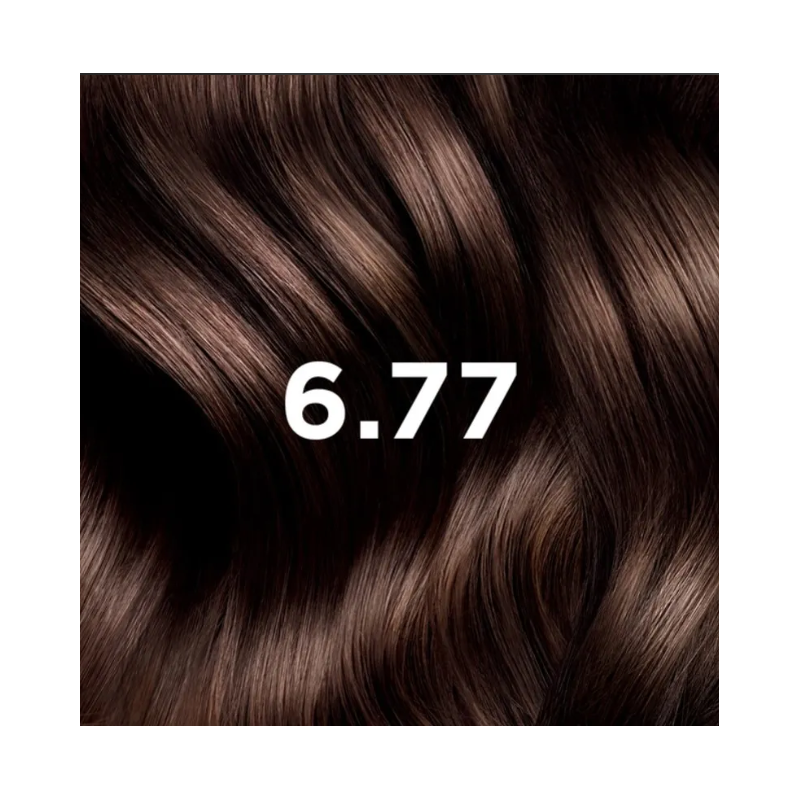 Coloración permanente con pigmentos vegetales que ofrece un marrón claro capuchino cálido, brillante y sofisticado, cuidando el cuero cabelludo y la fibra capilar.