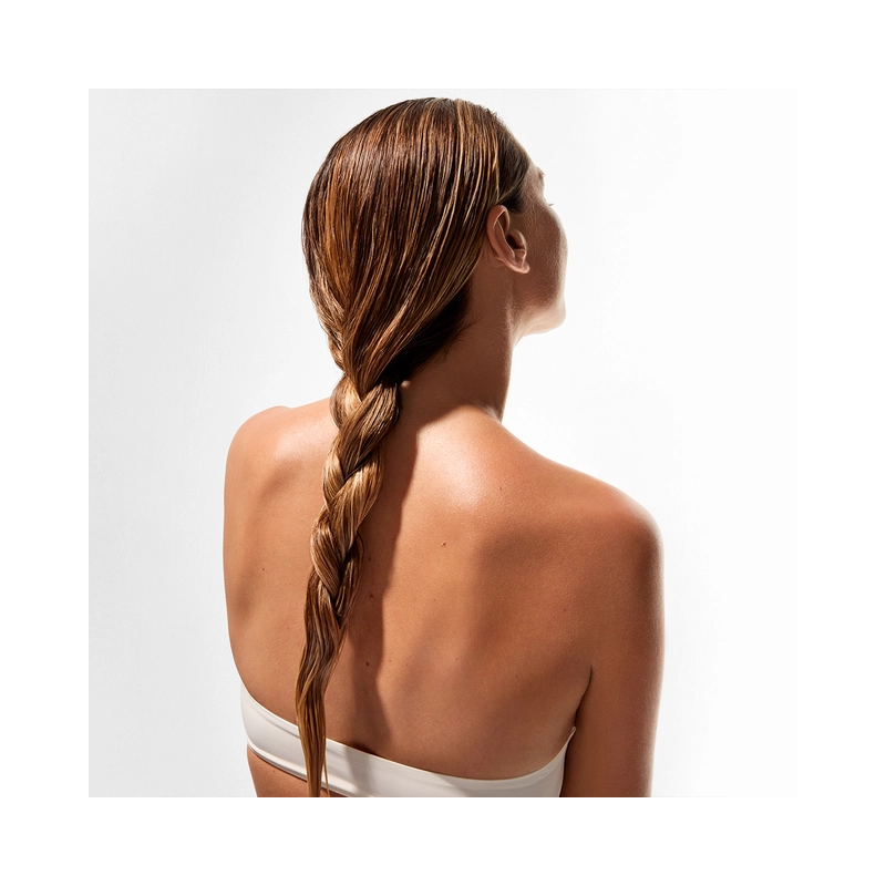 Champú reparador e hidratante que elimina residuos de cloro, sal y arena tras la exposición solar, devolviendo suavidad y brillo al cabello.