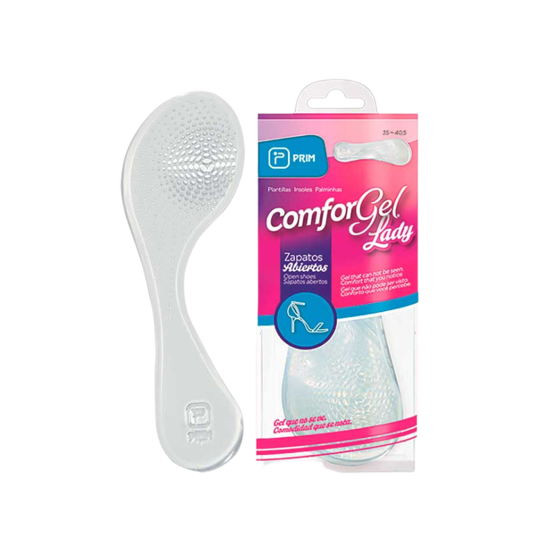 Prim Comforgel Lady Plantilla Gel para zapatos abiertos proporciona comodidad y amortiguación, reduciendo la presión en la zona del antepié y mejorando el confort al caminar.